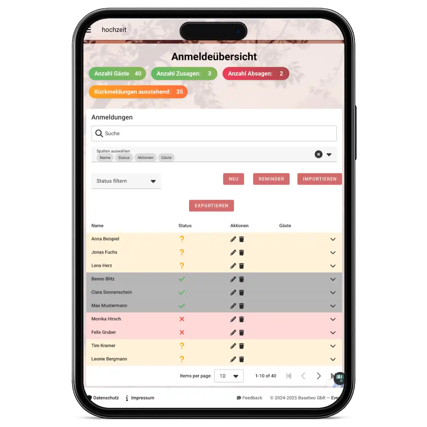 Lade deine Gästeliste hoch und exportiere die Rückmeldungen wieder