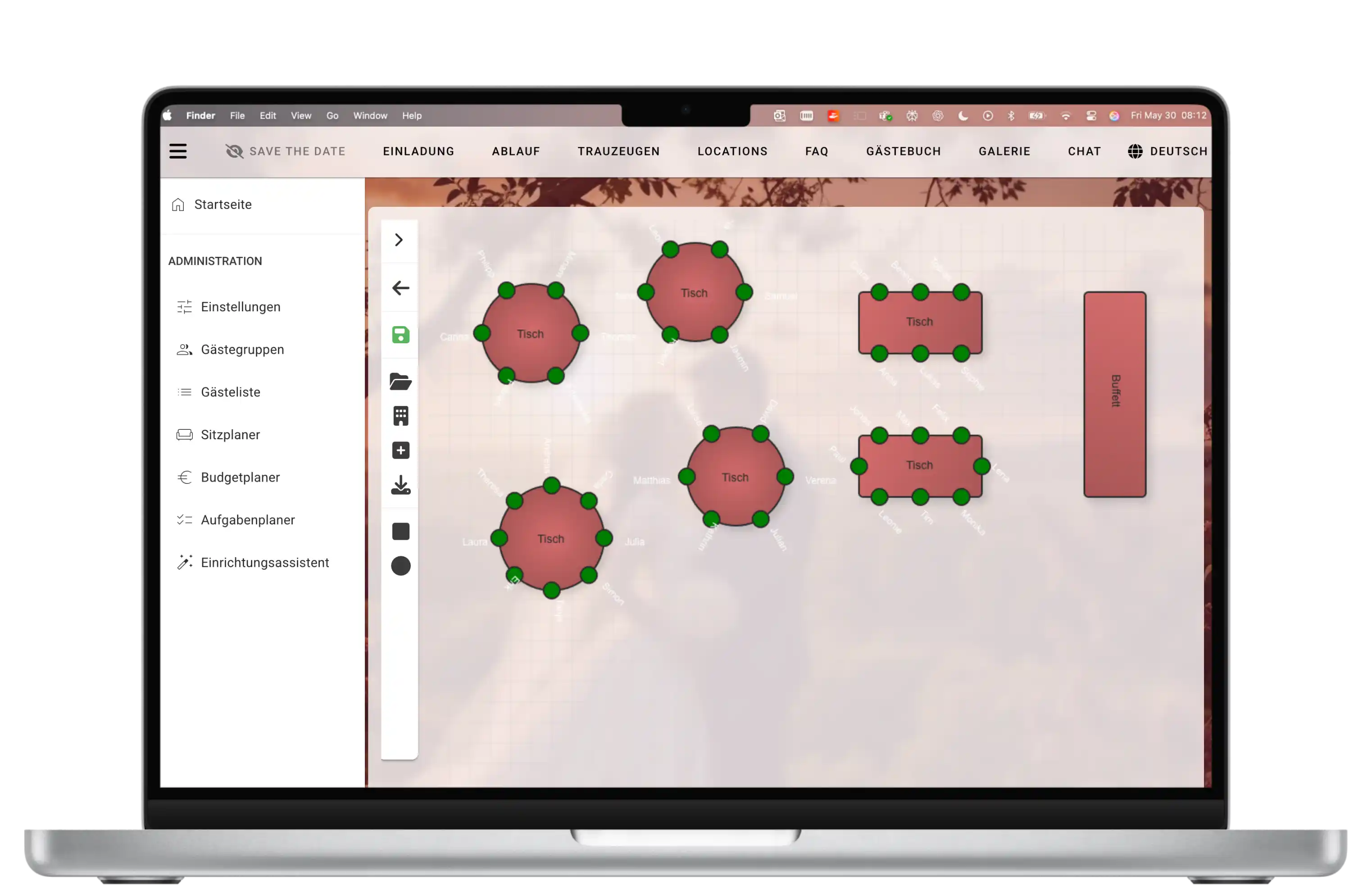 Ja, ihr könnt den Sitzplan als PNG exportieren. Bonus: der Hintergrund ist transparent, so kannst du selbst noch ein Bild hinterlegen, wenn du möchtest