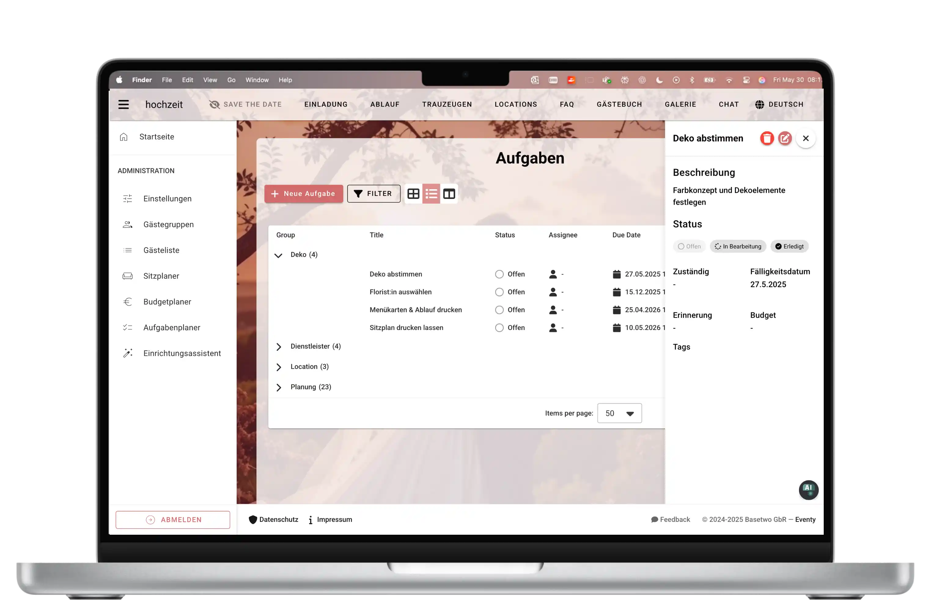 Eventy👰🤵 Deine Hochzeit, perfekt geplant – mit einer Seite für alles.